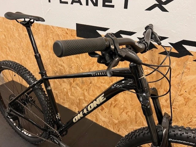 The Scandal’s 29 inch wheels roll smooth and fast no matter how rough it gets. Wide profile WTB i30 rims built onto weather durable sealed cartridge bearing hubs. matched with mud capable Panaracer Firesport 2.35in tyres.